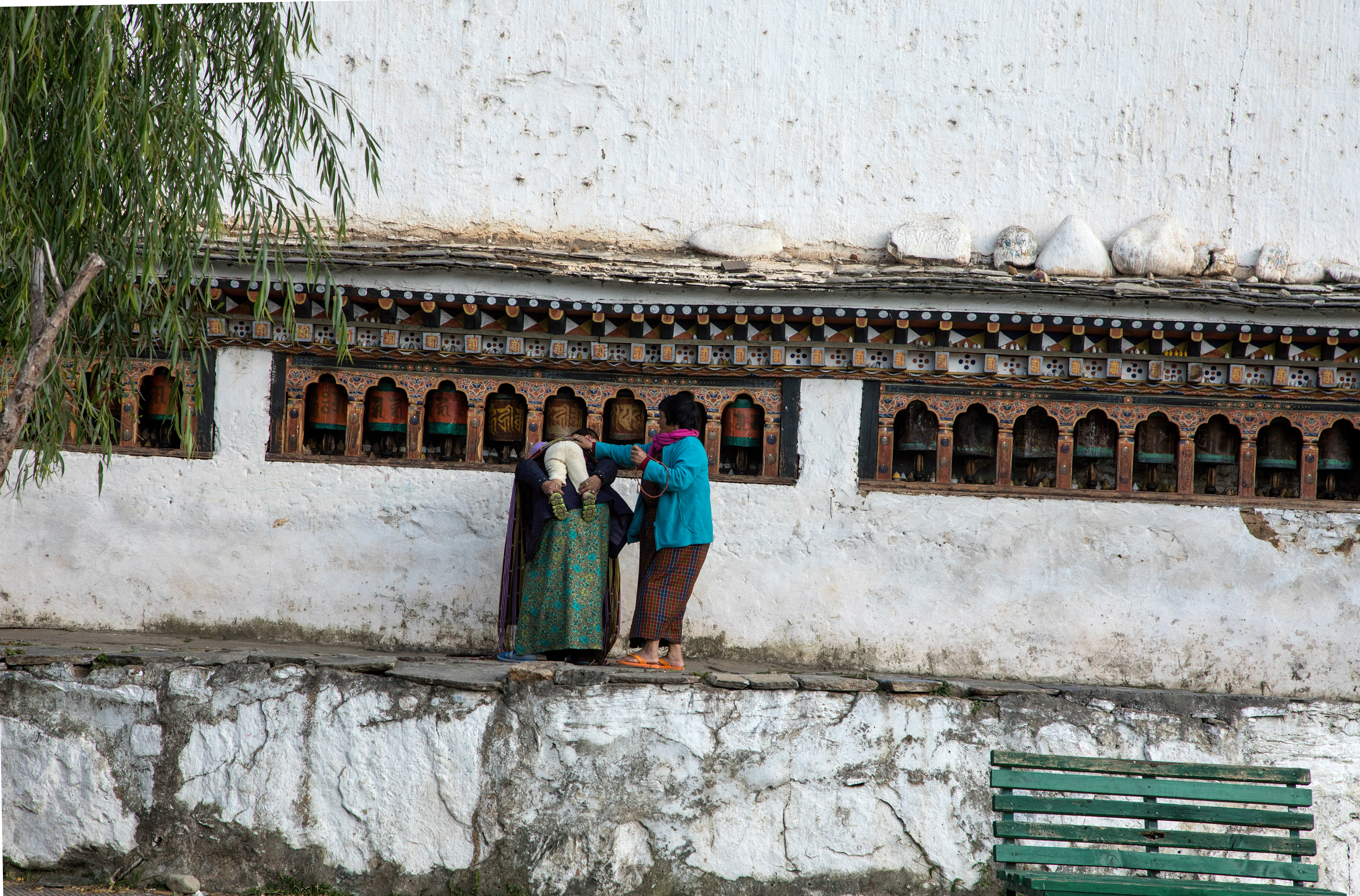 Prayer wheels are everywhere. Every time you spin it around, a prayer goes up to the heavens. If you give it a good push, you get a big return. Of course, children want to do it, though it is hard if you don't want them to dismount from their perch.