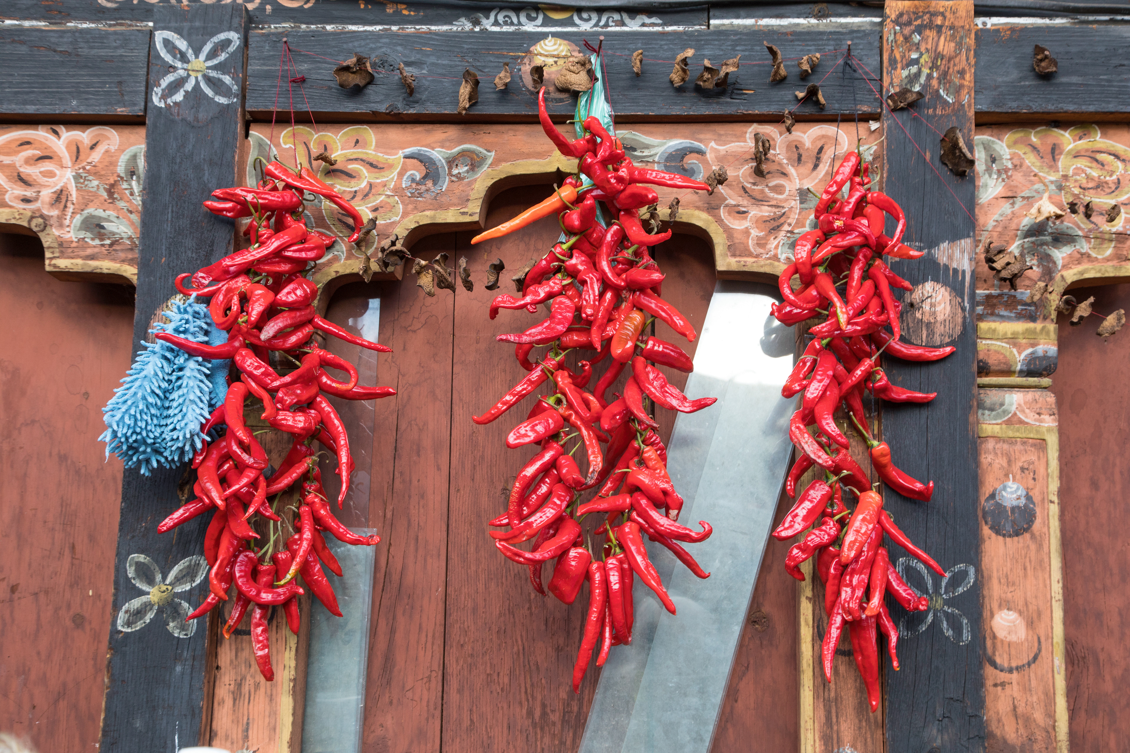 Chili Peppers are found drying everywhere. Hanging from strings on windows and doorways, covering roof tops, and on walkways.